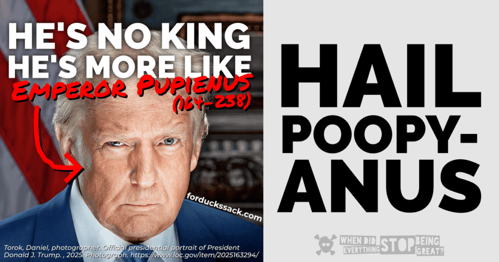 In a fictional, yet familiar world that occasionally intersects our own, we listen in as aspiring authoritarian leader, Hugo Sensationist, persuades rising liberal star, Troy Laboy, to switch sides. In the process we get to consider the many different times that the nation of Everything could have stopped being great, all the time highlighting the huge unfairness in society.